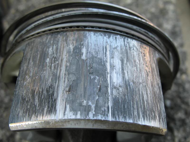 Although rare and more prone to happen in colder climates, the later 3.6 cylinder engines have been known to develop piston and cylinder wall scoring. Based on published information, scoring may be due to a few factors. One is the position of the oil nozzles that spray lubricant vertically rather than upward. Instead the oil winds up at the bottom of the cylinder wall instead of the top. The picture to the right shows an oil nozzle removed from a 3.4 engine.