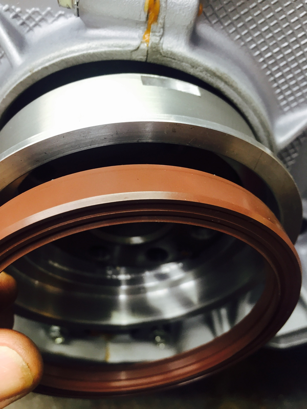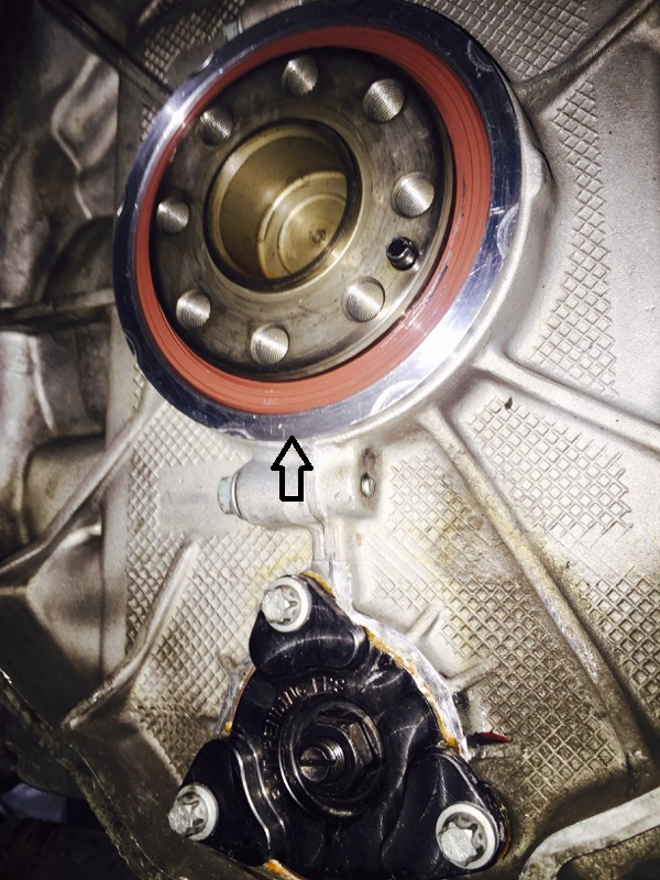 Aftermarket automotive engineers are working right now to resolve this problem and we expect an effective and permanent solution to this problem. For example, check out the next two pictures below. Aftermarket engineers have devised a solution to the crankshaft problem by inserting an additional main bearing. This creates much needed support for crankshaft seal surface and reduces the forces from the chain and flywheel on the crank. The additional support utilizes the existing rear main seal area and a different seal is utilized as the rear main seal. This new design has a channel to lube the area and allows for the rear main seal and bearing to share the same friction area of the crankshaft to reduce vibration on the seal and thus reducing the risk for oil leak. The engineers tell us that the additional support also yields a smoother running engine and longer lasting seal and bearing.